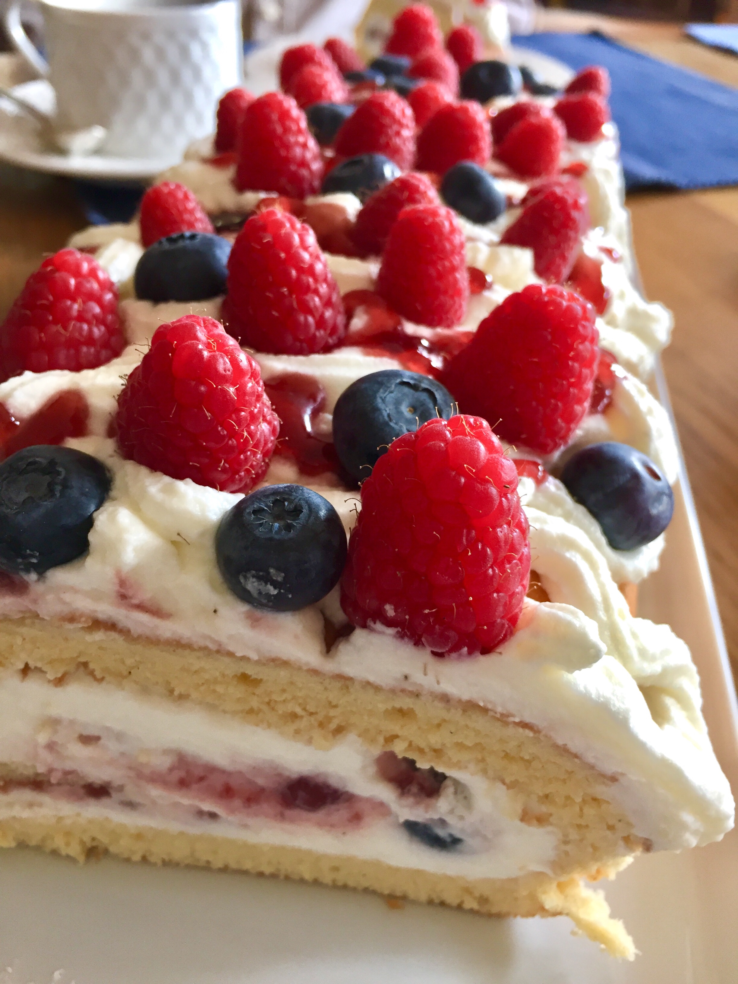 Ich habe heute mal eine Biskuitrolle mit einer fruchtigen Sahnefüllung probiert. Das Rezept ist vom Cookkey und ich bin echt begeistert. Super köstlich. . . 😋