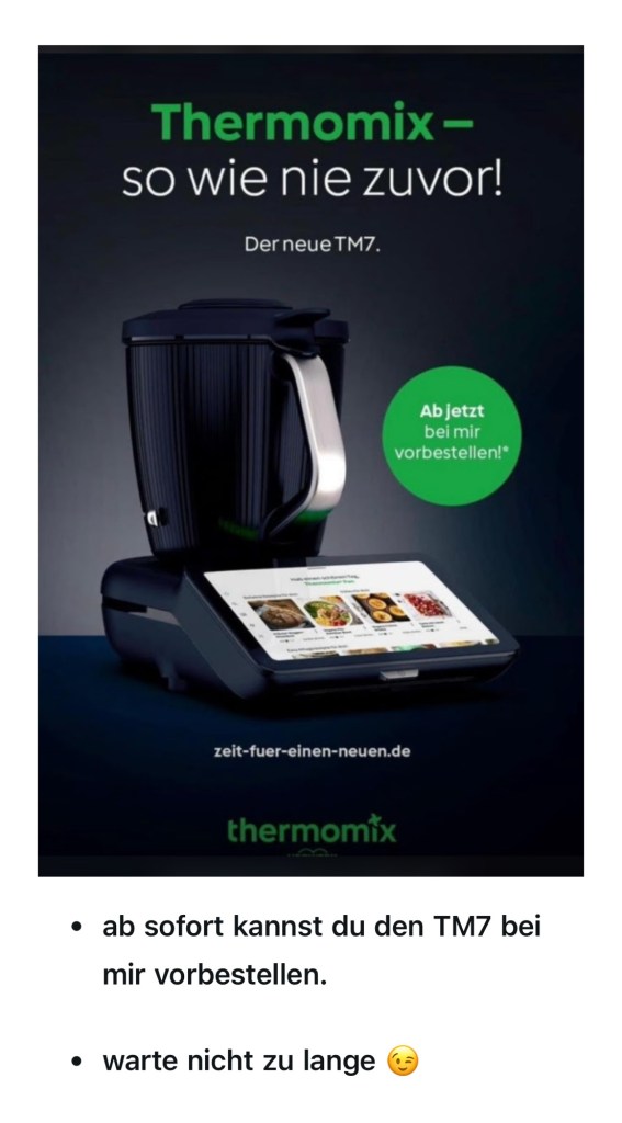 Egal, ob du bereits Erfahrung mit dem TM6 hast oder neu in der Welt des Kochens bist, ich passe die Präsentation ganz nach deinen Wünschen an. Du kannst einen Termin mit oder ohne Kochsession vereinbaren. Lass uns gemeinsam die Magie des Kochens entdecken und herausfinden, wie der TM6 dir das Kochen erleichtern kann!